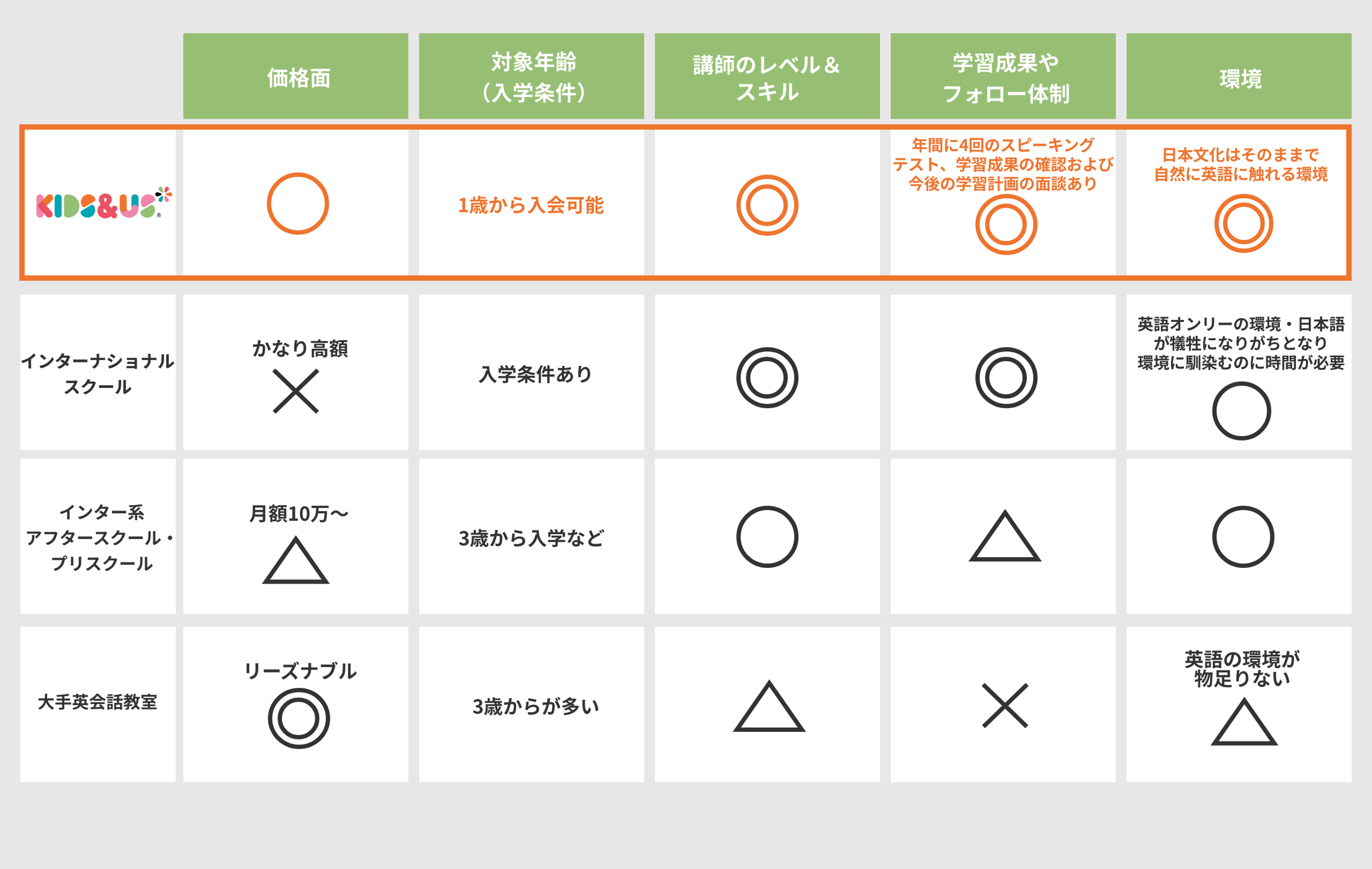 私たちKids&Usが目指すのは、日本で育ち、日本の教育を受けながらも、海外の非英語圏の人々と同等に英語を話せる子どもたちを育てることです。